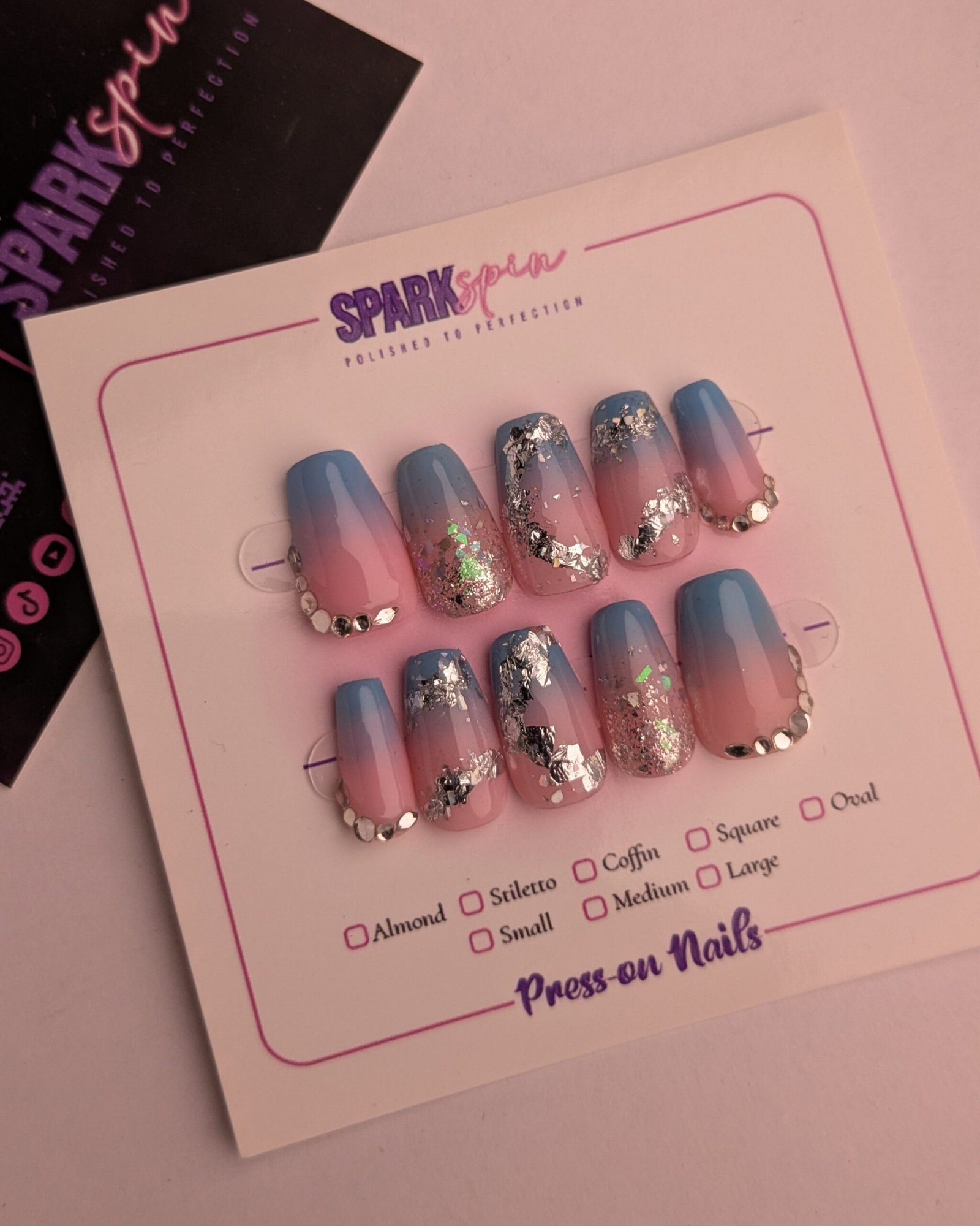 Elevate your nail game with our handmade premium press-on nails – crafted with love and precision to bring salon-quality beauty right to your fingertips. Featuring a soft nude base adorned with Galactic Gaze, this design is perfect for weddings, parties, or everyday glam.
